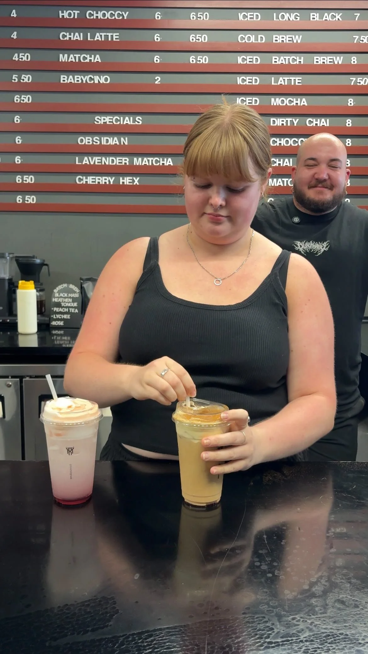 Strawberry milk with espresso, finished with strawberry cold foam. Sweet, creamy, and impossible to ignore.