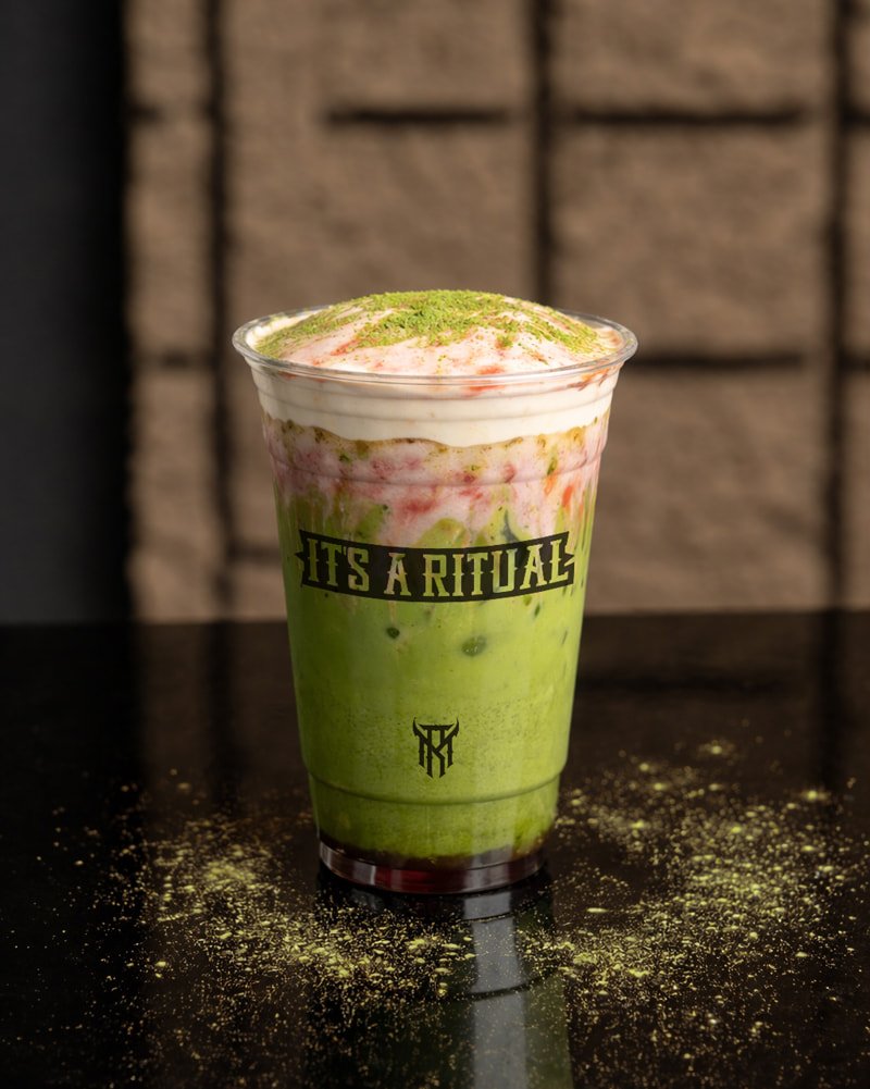 Earthy matcha with strawberry syrup and strawberry cold foam. Fresh, pink, and unexpectedly balanced.